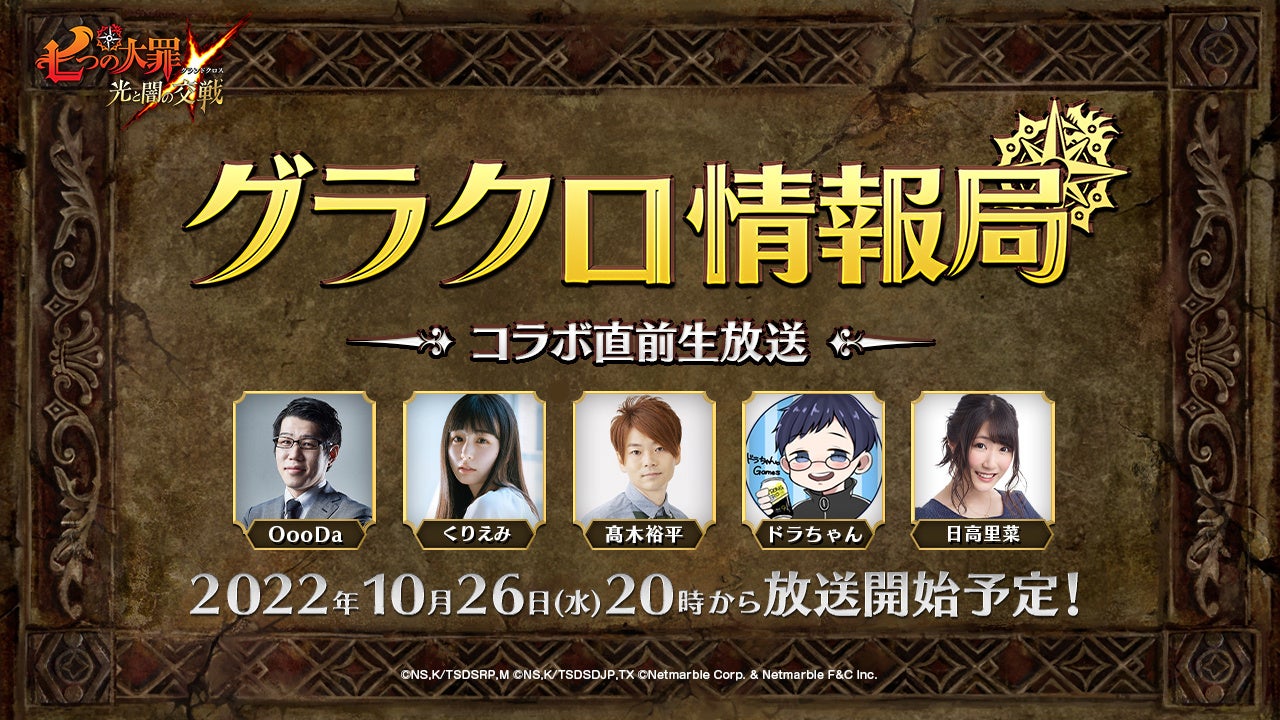 ◆グラクロの最新情報をお届けする公式番組「第39回グラクロ情報局 ~コラボ直前生放送~」―10/26(水)20:00より生放送!