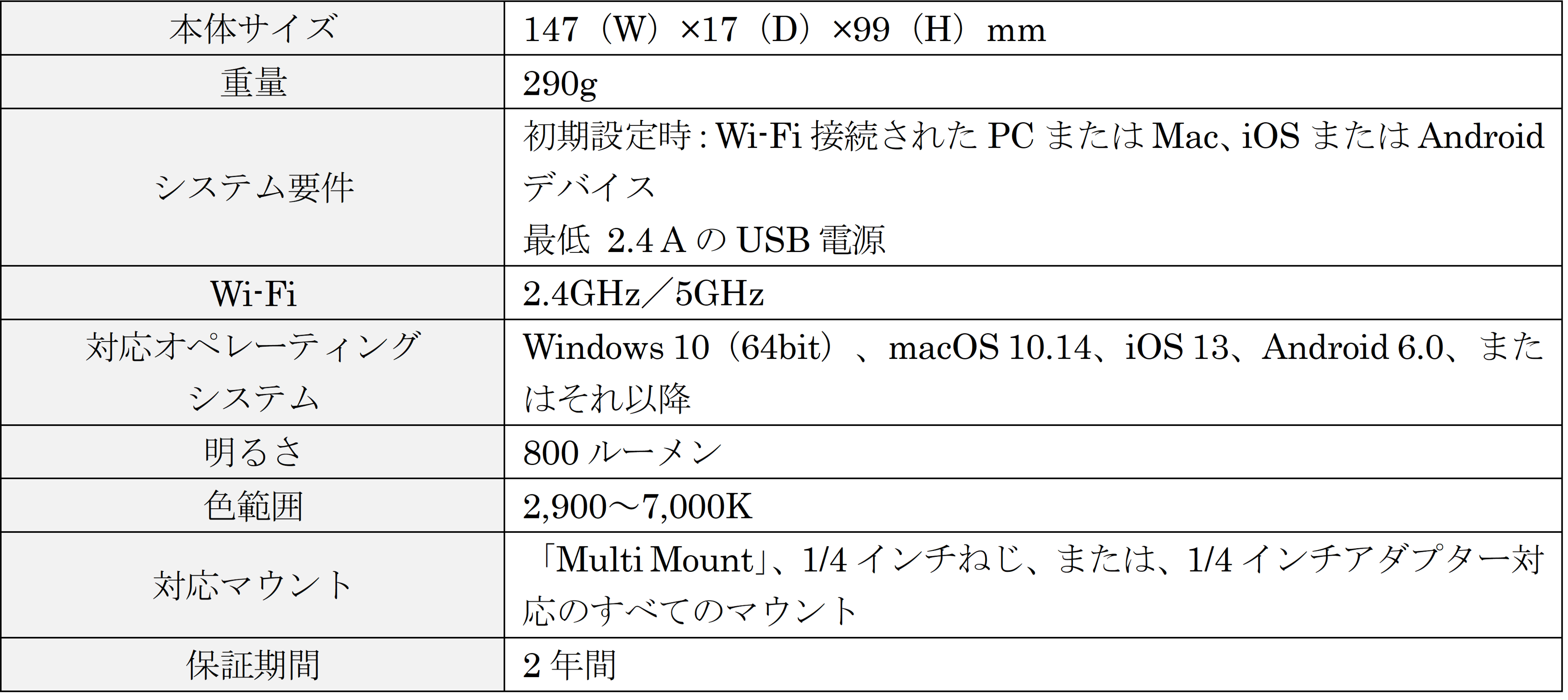 ・「Key Light Mini」「Master Mount」「Flex Arm」などに対応