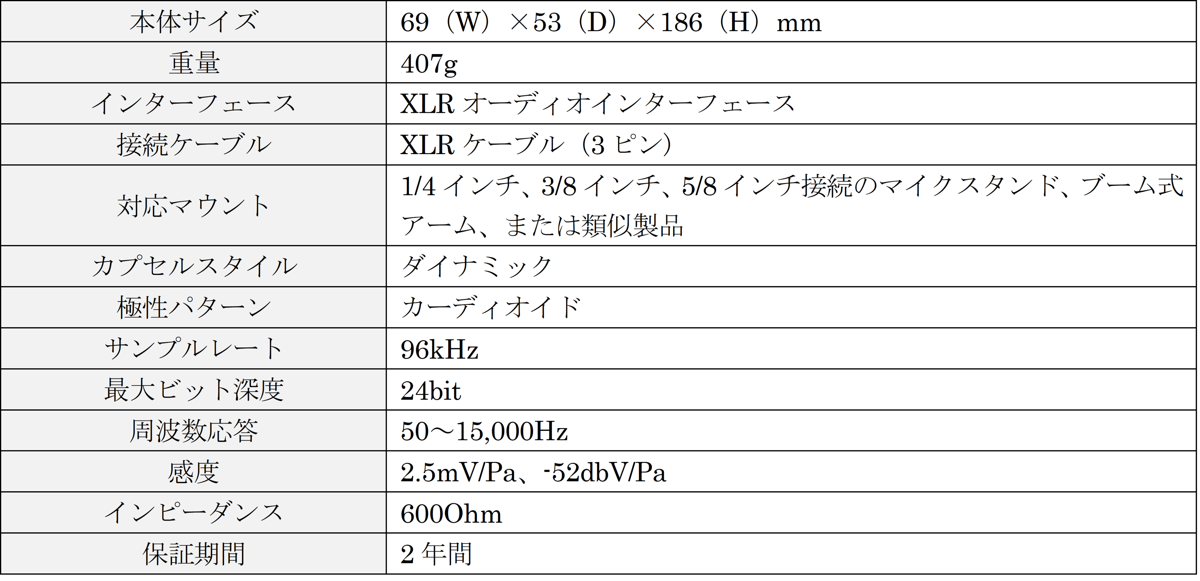 ・発話のために最適化され、温かみのある、再現性の高いサウンド特性
