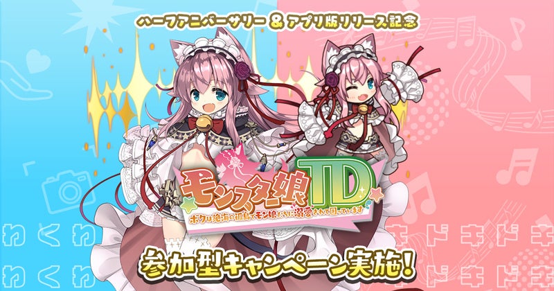 『モンスター娘TD』のハーフアニバーサリーおよび、App Store版/Google Play版の正式サービス開始を記念して、2つの参加型キャンペーンの開催が決定!本日、特設サイトをオープンし、「手乗りビビ神を撮影しよう♪キャンペーン」を開始いたしました。「ビビ神と一緒に踊ろう♪キャンペーン」は、後日開始予定です。