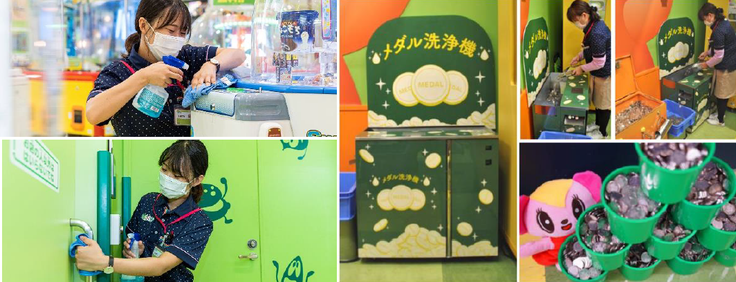 ・メダル洗浄機を設置し、定期的にメダルの洗浄を行います。