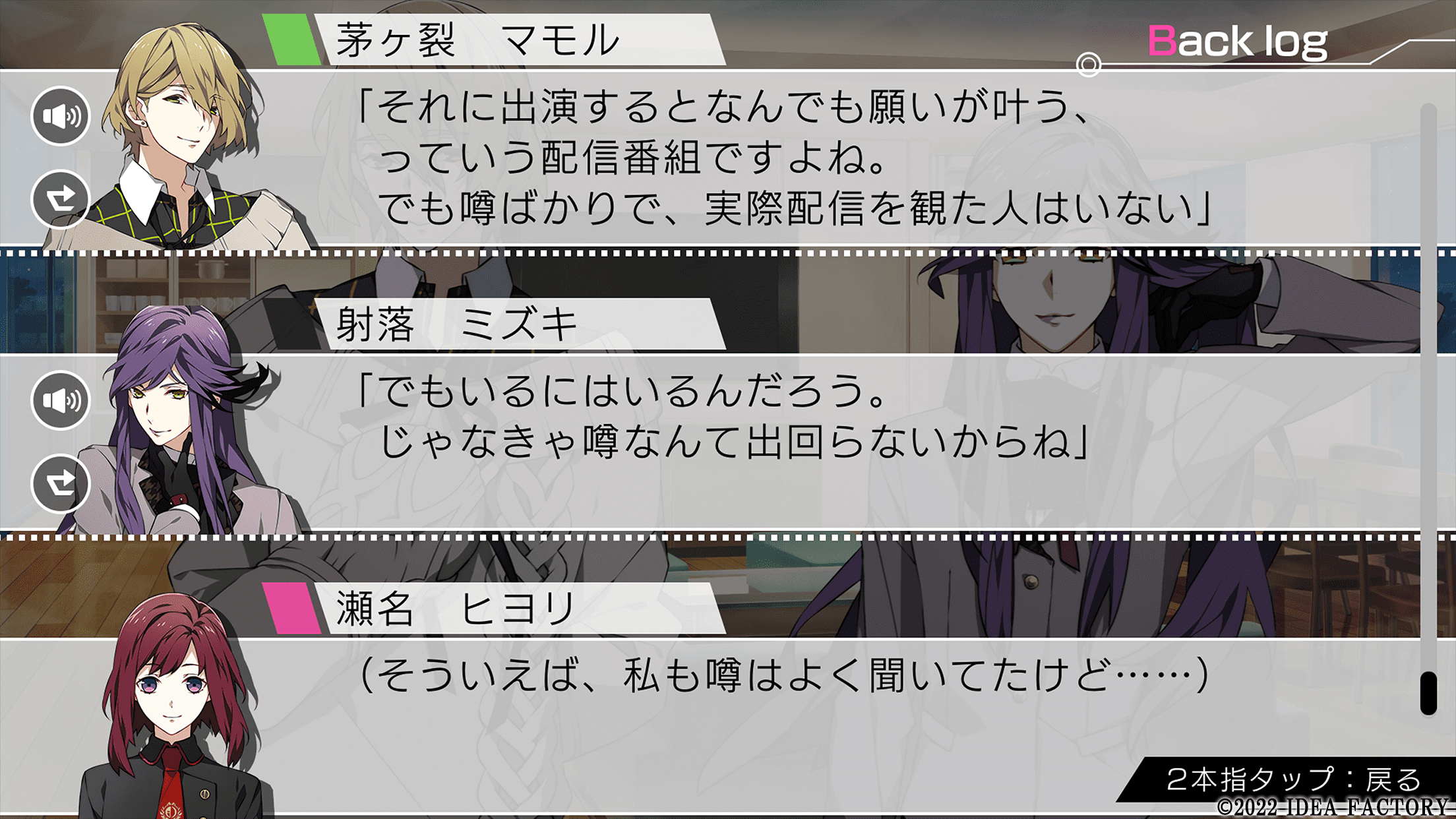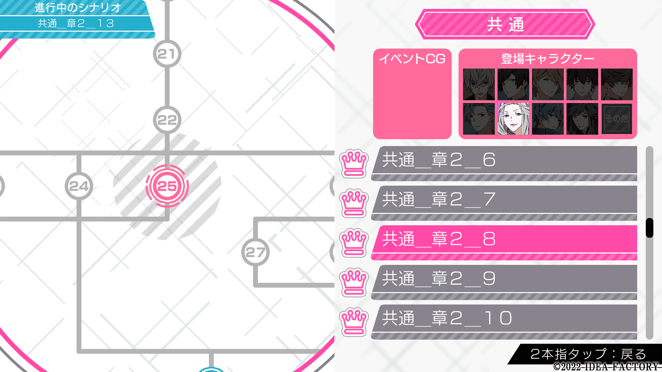 また、一度閲覧したシナリオならフローチャート上からシナリオを選択することで、再進行することが可能です。