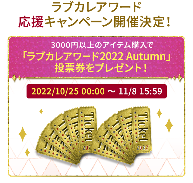 ※詳細はラブカレアワード終了後に決定し次第、各アプリ内でお知らせいたします。