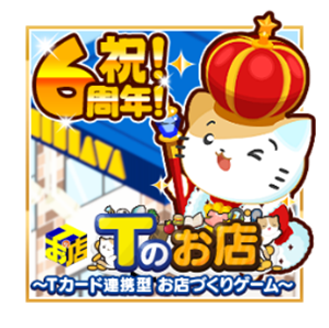 Tカード連動型お店づくりゲーム『Tのお店』は、Tカードを提示してお買い物をするとあなたのお店に「いいこと」が起きるお店づくり経営シミュレーションゲームです。