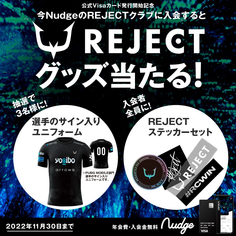 ナッジ株式会社(本社:東京都千代田区、代表取締役:沖田 貴史、以下「ナッジ」)は、次世代型クレジットカード「Nudge(ナッジ)」において、日本トップクラスの実績を持つeスポーツチーム「REJECT」クラブを開設、オリジナルカードを発行したことをお知らせします。Nudgeカードの仕組みを利用し、ユーザーのNudgeカード利用金額の一部がREJECTの活動の応援になります。また同時に豪華プレゼントが当たる入会キャンペーンを実施します。尚、ナッジとしてeスポーツチームとの提携は初となります。
