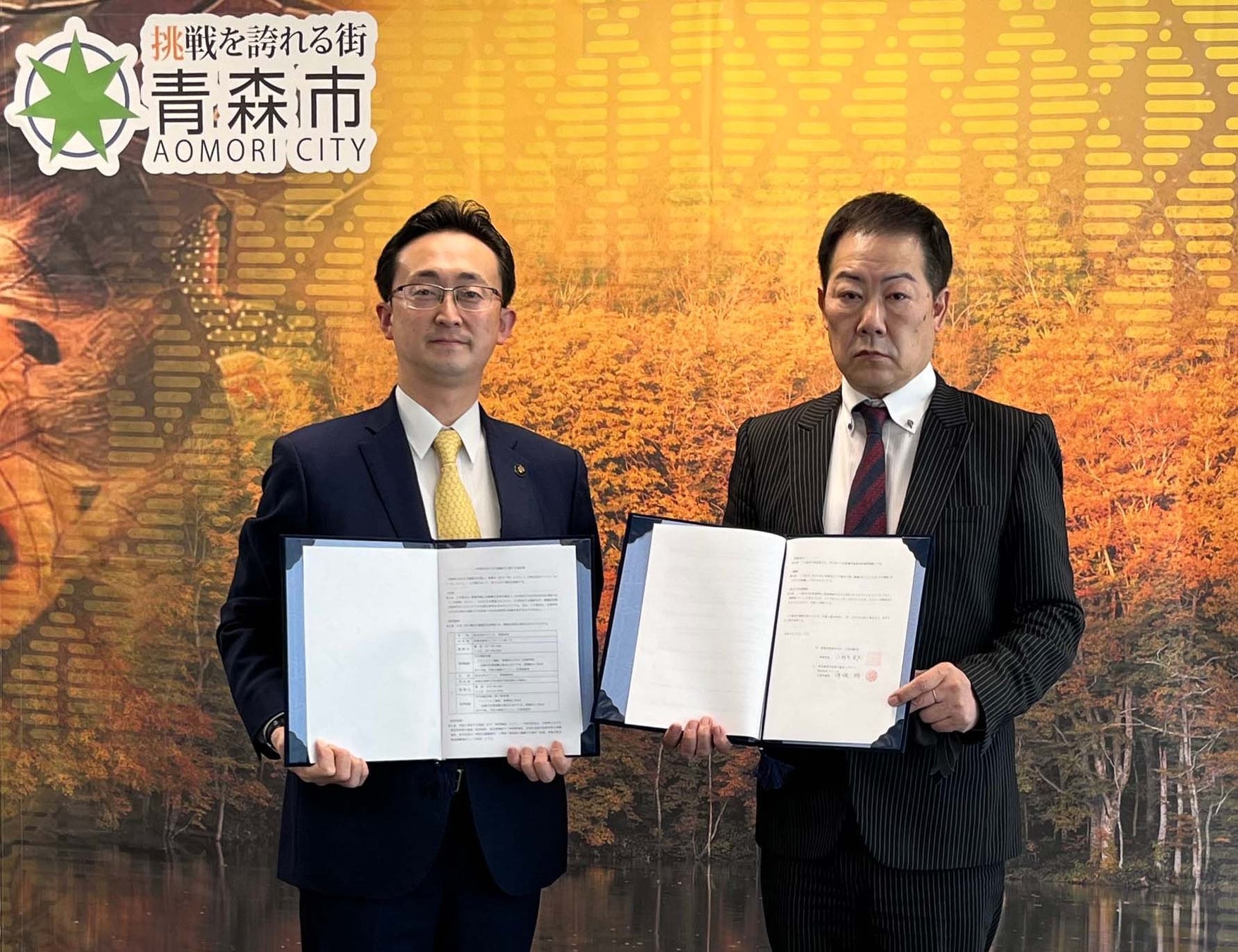 同日、青森市役所で行われた調印式では、青森市小野寺市長より当社エリアマネジャーの亀山へ協定書が授与されました。今回の締結により地方自治体との締結は69件目(122店舗)となります。