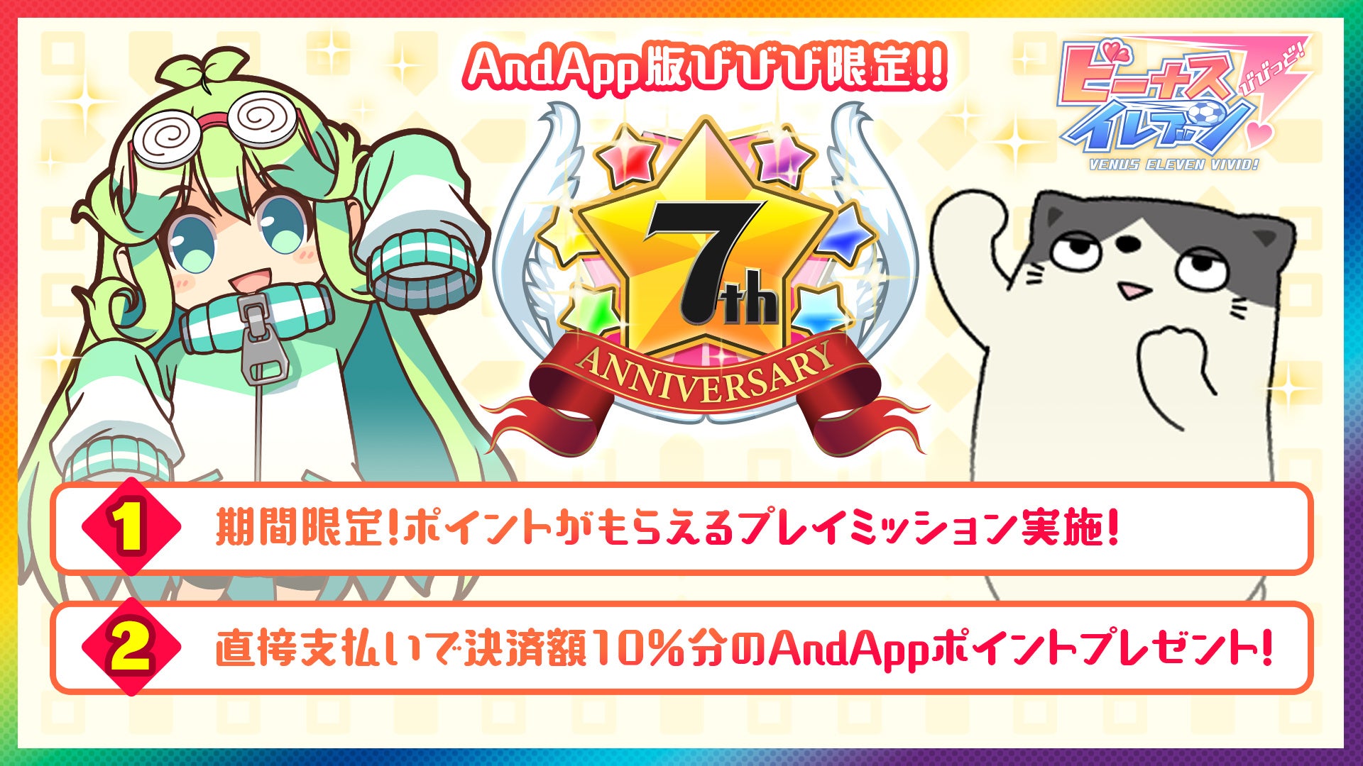 - ビーナスイレブンびびっど!AndApp限定7周年記念キャンペーン開催!