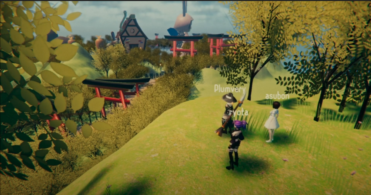- 既存のゲームエンジンでは難しかったリアルタイム共同編集を実現しました。バーチャル空間上に集まったゲームクリエイター同士が、会話しながらゲーム制作のプロセス自体を楽しむことが可能です。