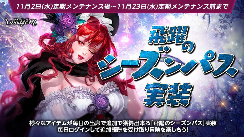 PCオンラインRPG「リネージュ」のモバイル版タイトル『Lineage M(以下、リネージュM)』のサービス、運営をしているエヌ・シー・ジャパン株式会社(東京都港区、代表取締役:金 澤憲(キム テクホン) 以下、エヌシージャパン)は、2022年11月2日(水)に、「飛躍のシーズンパス」の登場、イベント「信念の塔攻略指令」の開催、および各種パッケージの登場をお知らせします。