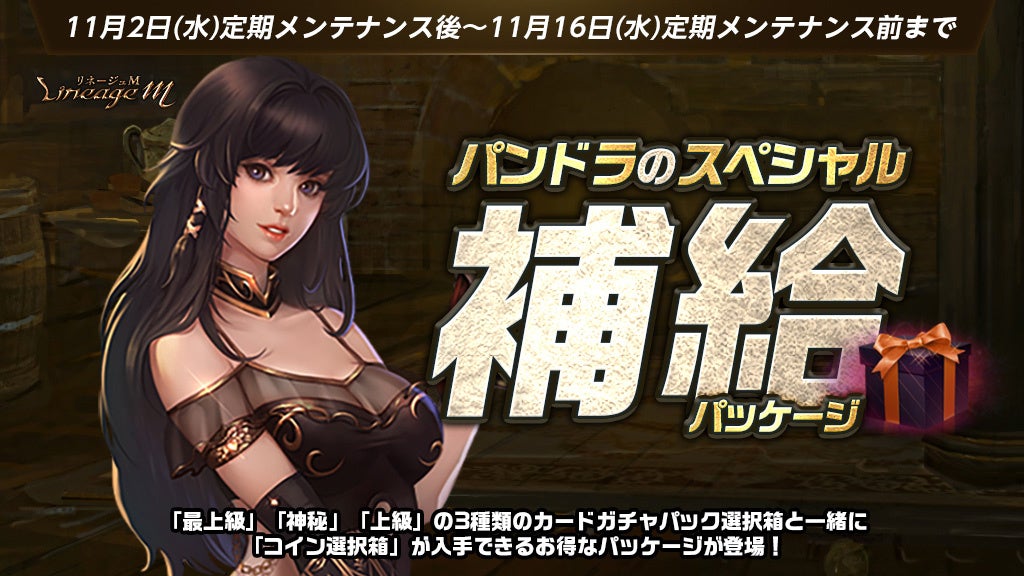 「最上級カードガチャパック選択箱」1個、「神秘のカードガチャパック選択箱」1個、「上級カードガチャパック選択箱」2個と、「コイン選択箱」1個がセットになった「パンドラのスペシャル補給パッケージ」が登場しました。