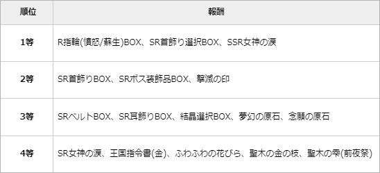 ▲報酬は1等~4等まで!1等の報酬には「SSR女神の涙」も!