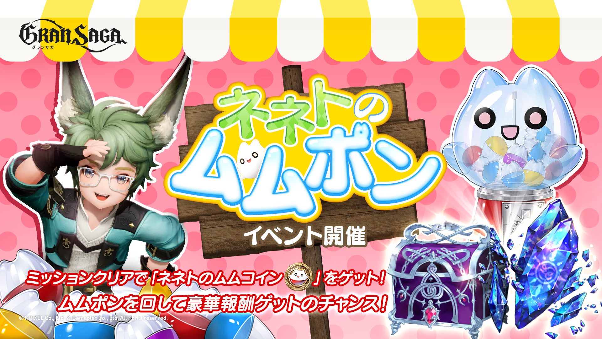 筐体を回して豪華な報酬をゲットできるイベント、「ネネトのムムポン」を開催中です!