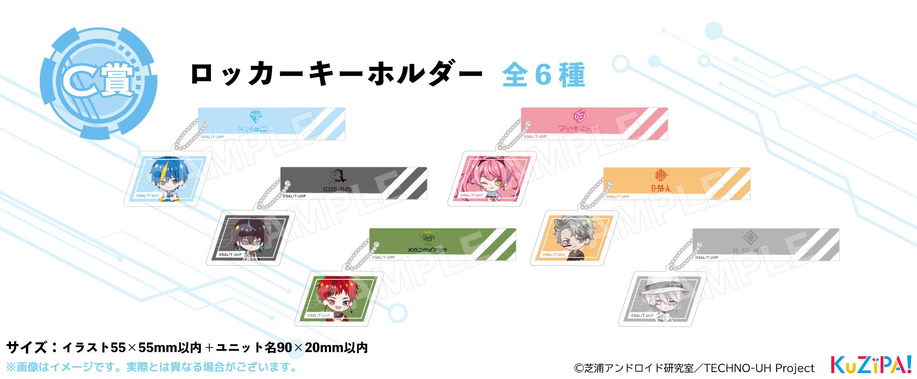 商品は、ブランケット、アクリルバッジ付きコンパクトトートバッグ、ロッカーキーホルダー、アンブレラマーカー、ハート型缶バッジ、「+On Challenge」景品のユニットロゴハンドタオルなど、クジパ限定描き起こしデザインのアイテムを是非ゲットしてください!