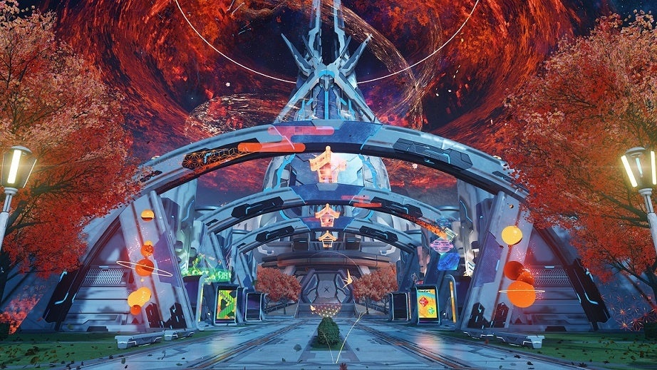 期間限定イベント「オータム’22」がスタート。落ち葉が舞う中、セントラルシティやリージョンマグが紅葉で美しく飾られます。