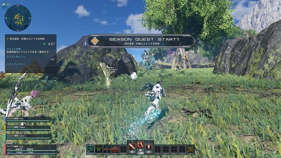 基本的なクエスト内容やルールはこれまで通りで、クリア時に参加者全員が入手できる「シーズナルポイント」は、クリア時点のクエストポイント合計による順位に応じて入手量が変化します。 クエストポイントはエネミーに最後の一撃を与えることで獲得でき、金、銀のレアエネミー、イコライジングエネミー、ラッピーは通常のエネミーより高いポイントを獲得できます。