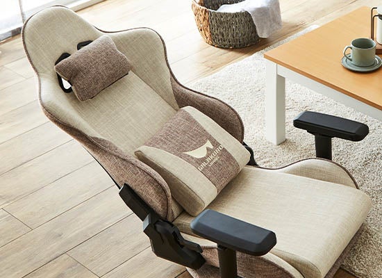 この度の新製品は、キャスターの無い座椅子型なので、日本の住宅環境にもマッチ!デスクスペースがなくても、快適なゲーム・デスクワーク環境をお作りいただけます。