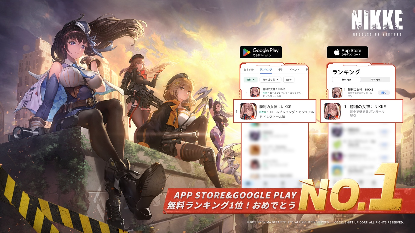 ■『勝利の女神:NIKKE』がApp Store無料ゲームランキング、セールスランキング、Google Play無料ゲームランキング1位獲得!