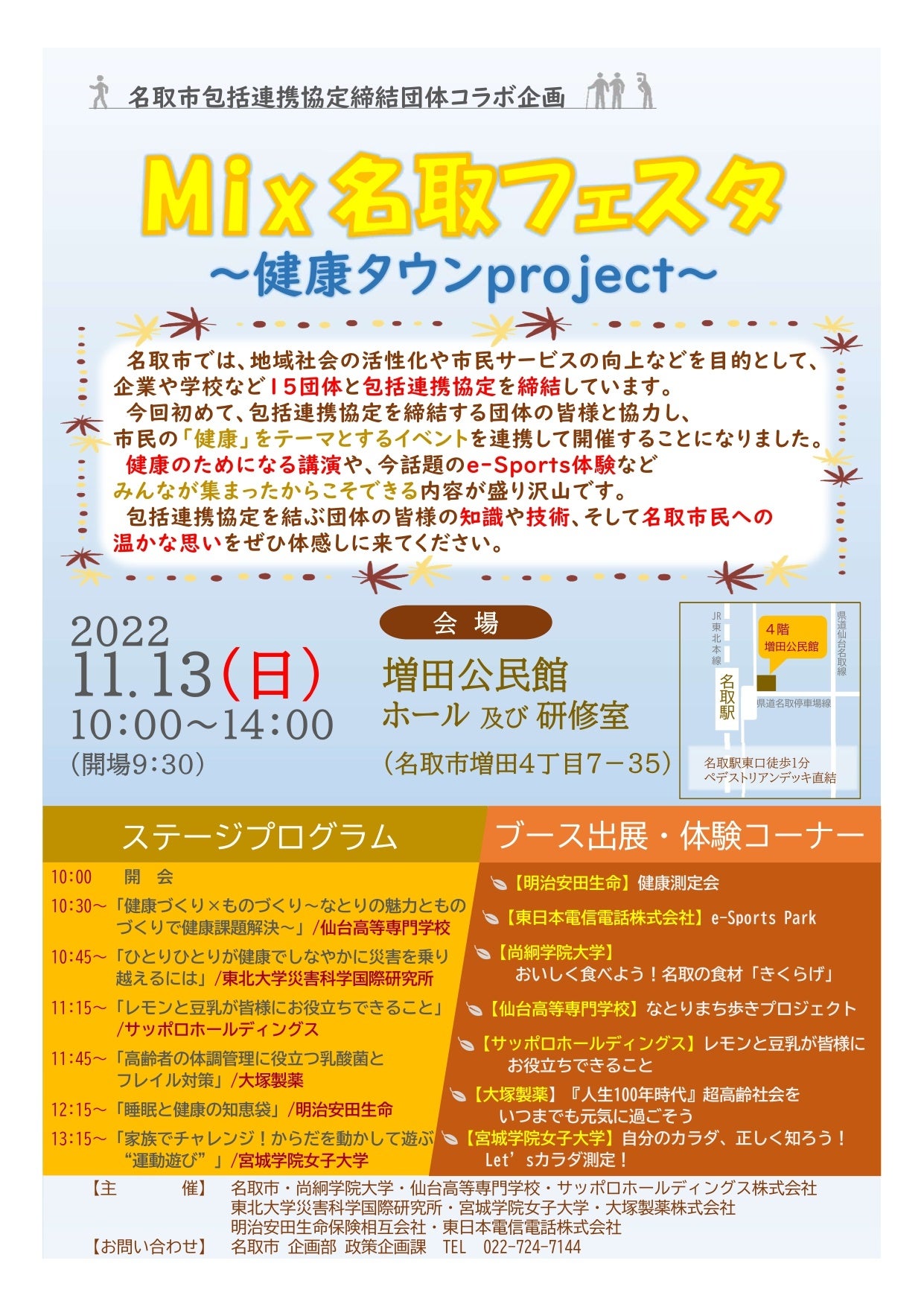 名取市と包括連携協定を結ぶ団体の「健康」をテーマとするコラボ企画