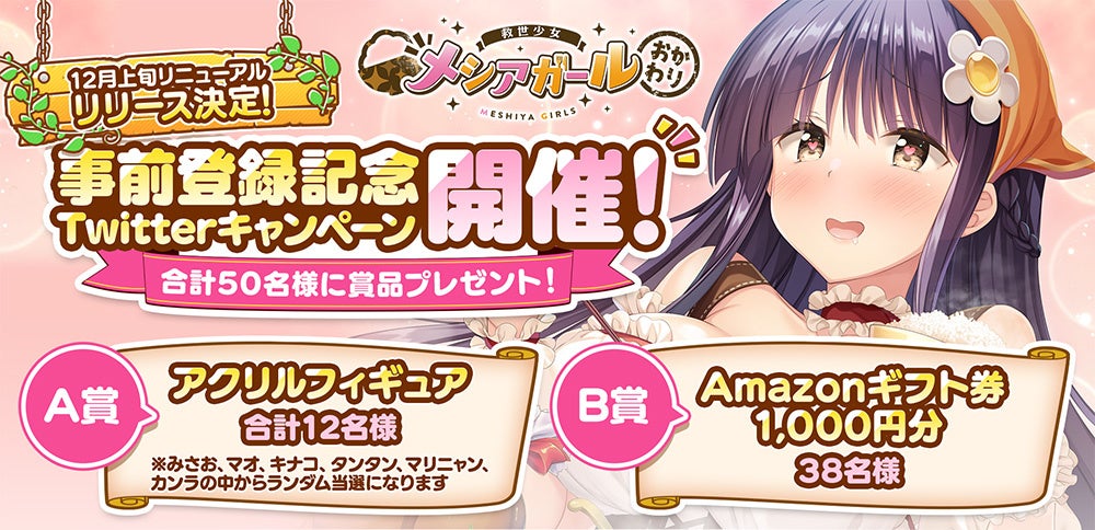 ゲームシステムの全面リニューアルを目的とした長期メンテナンスが行われている「救世少女 メシアガール」。タイトルを「救世少女 メシアガール おかわり」に改め、今冬の再リリースに向け、本日(2022年11月7日)より事前登録を開始しました。事前登録を行った人は、サービス開始までリニューアル記念カウントダウンガチャに参加することが可能です。