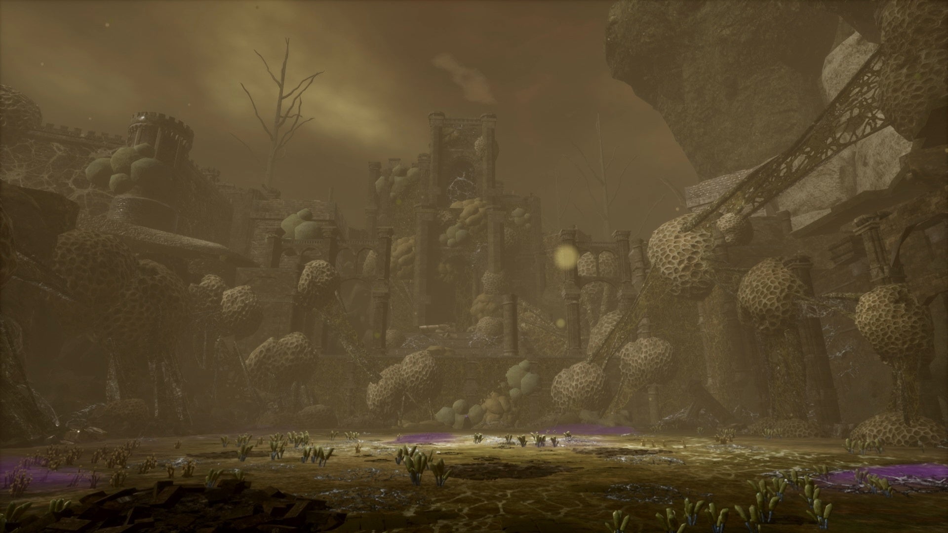 菌糸によって侵された巨大樹が並ぶ森。かつては神獣と呼ばれる魔獣が済んでいたという。
