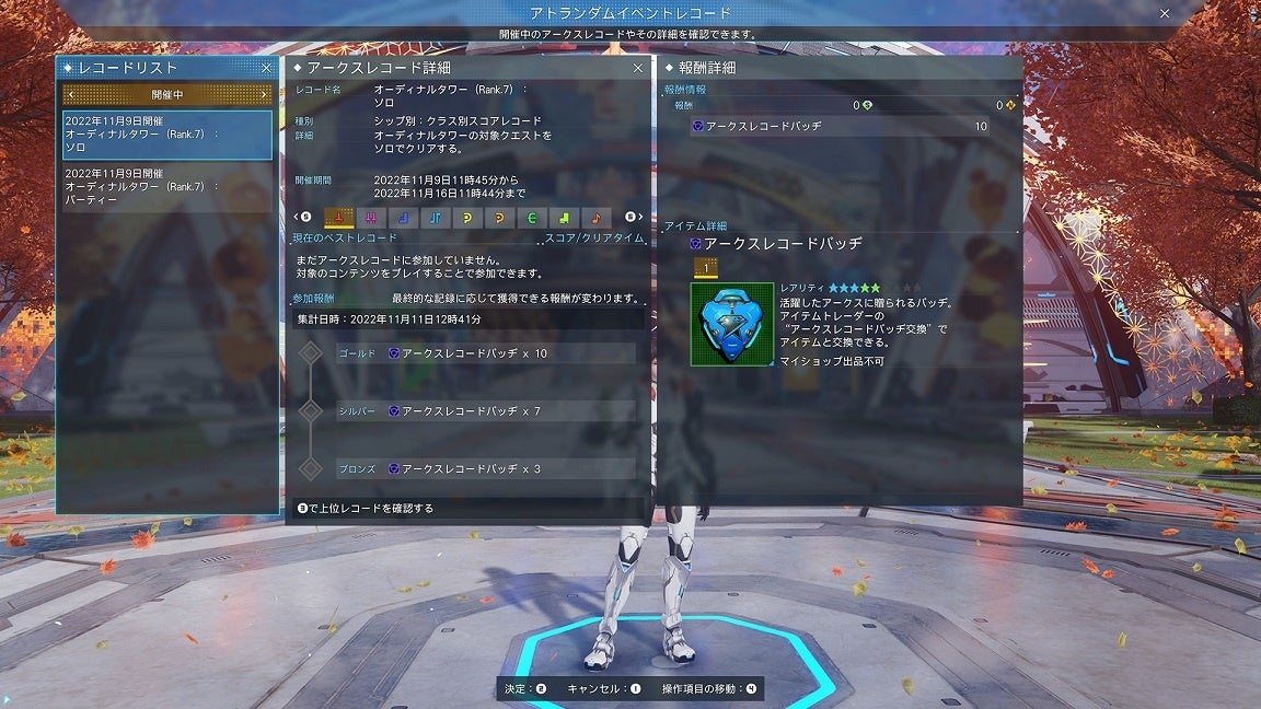 「オーディナルタワー」を対象としたアークスレコードが開催されます。「アトランダムイベントレコード」は「アークスレコード」のひとつです。今回は最終ランクのRank.7のみが対象となっています。さらに、「ソロ」と「パーティー」が同時開催となります。