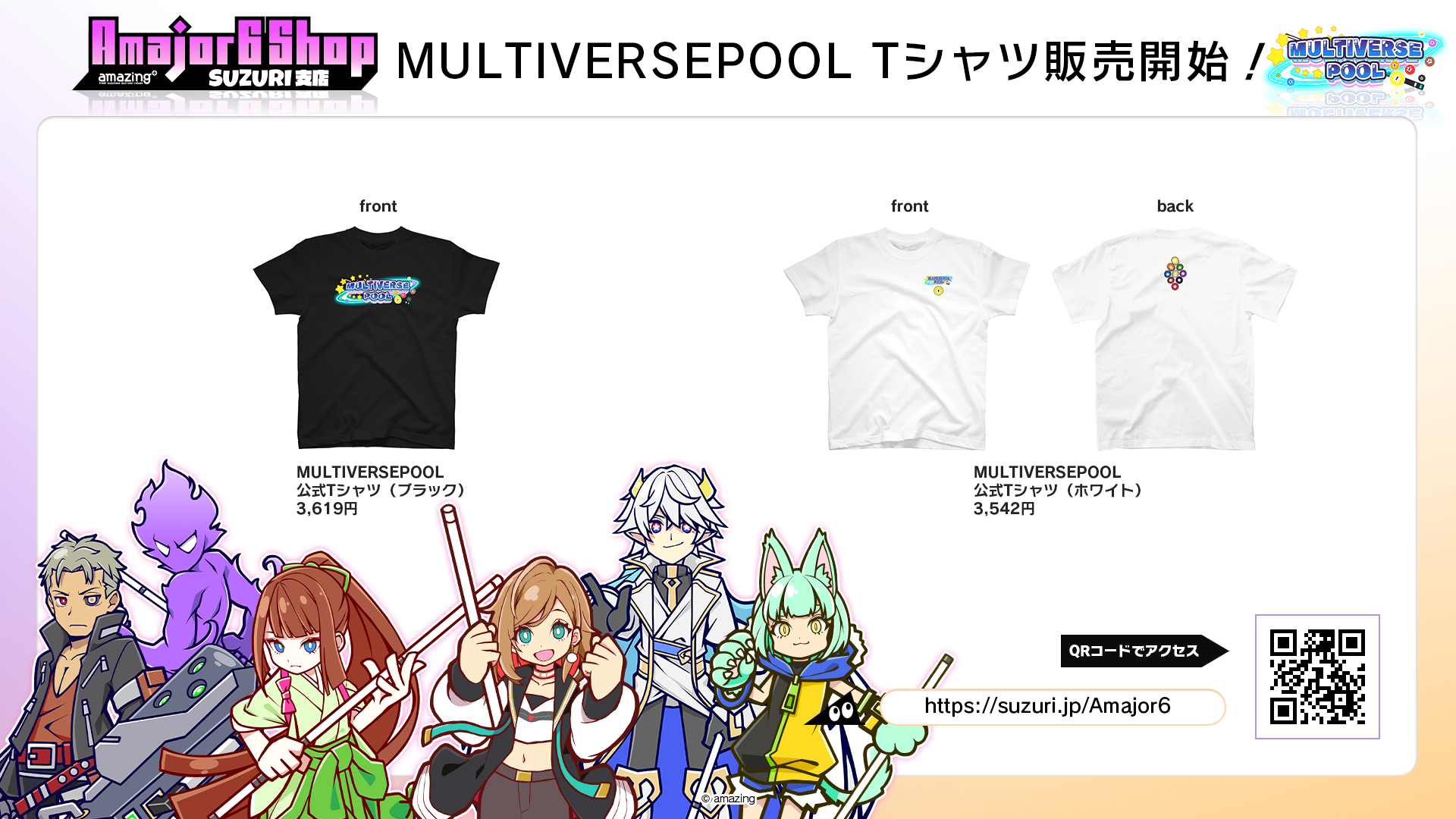 「MULTIVERSEPOOL」の発売を記念して、アメージング公式オンラインショップ「Amajor6 Shop SUZURI支店」にて公式オリジナルグッズを販売中です。
