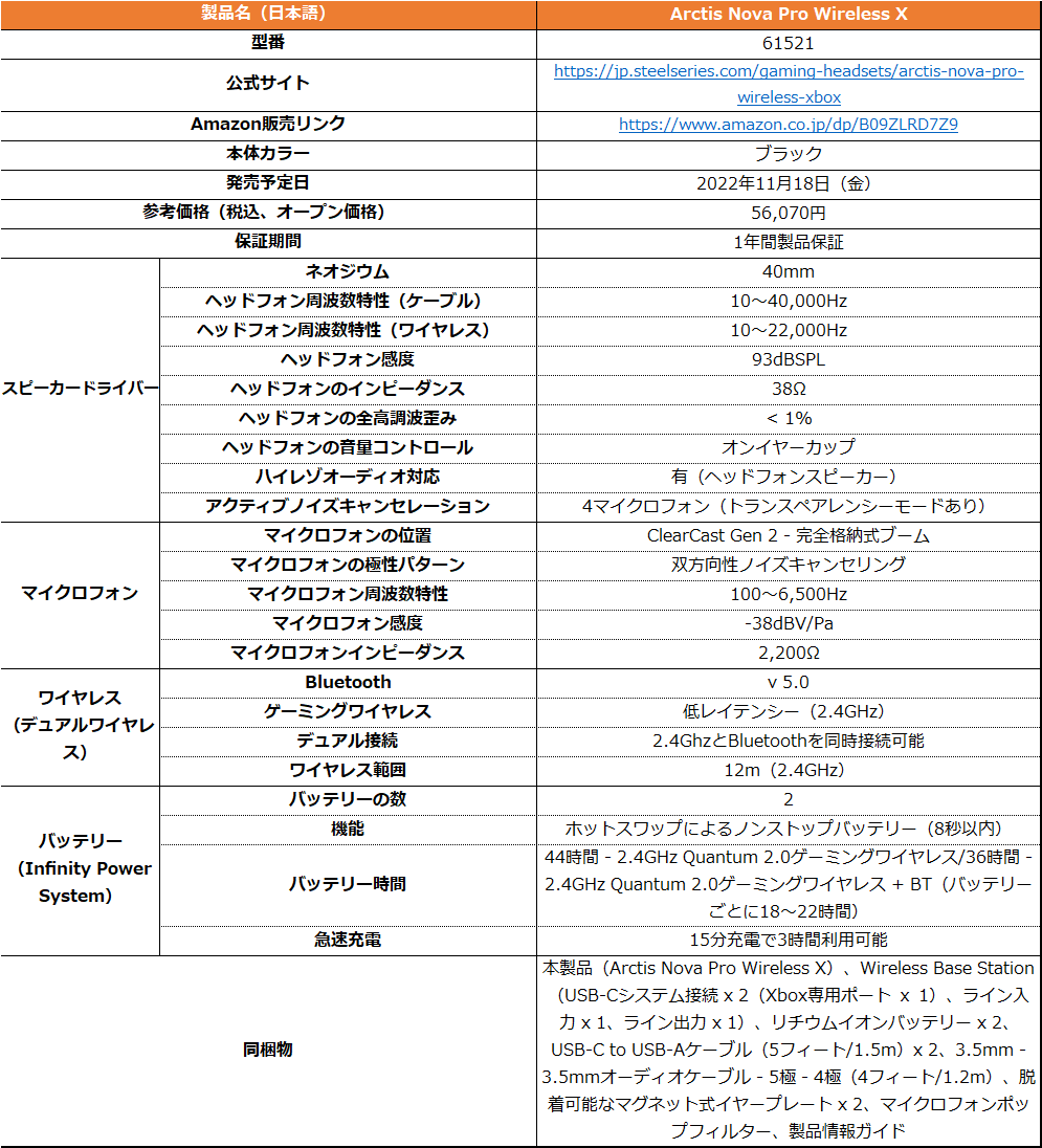 Arctis Nova Pro Wireless X:11 月 18 日(金)、56,070 円