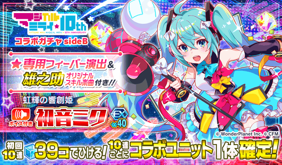 エンターテインメントサービス事業を行うワンダープラネット株式会社(本社:愛知県名古屋市、代表取締役社長CEO:常川友樹、東証グロース:証券コード4199、以下当社)は、iOS/Android端末向けに配信中のスマートフォンゲーム『クラッシュフィーバー』において『初音ミク「マジカルミライ」10th Anniversary』とのコラボイベントの実施を決定したことをお知らせいたします。