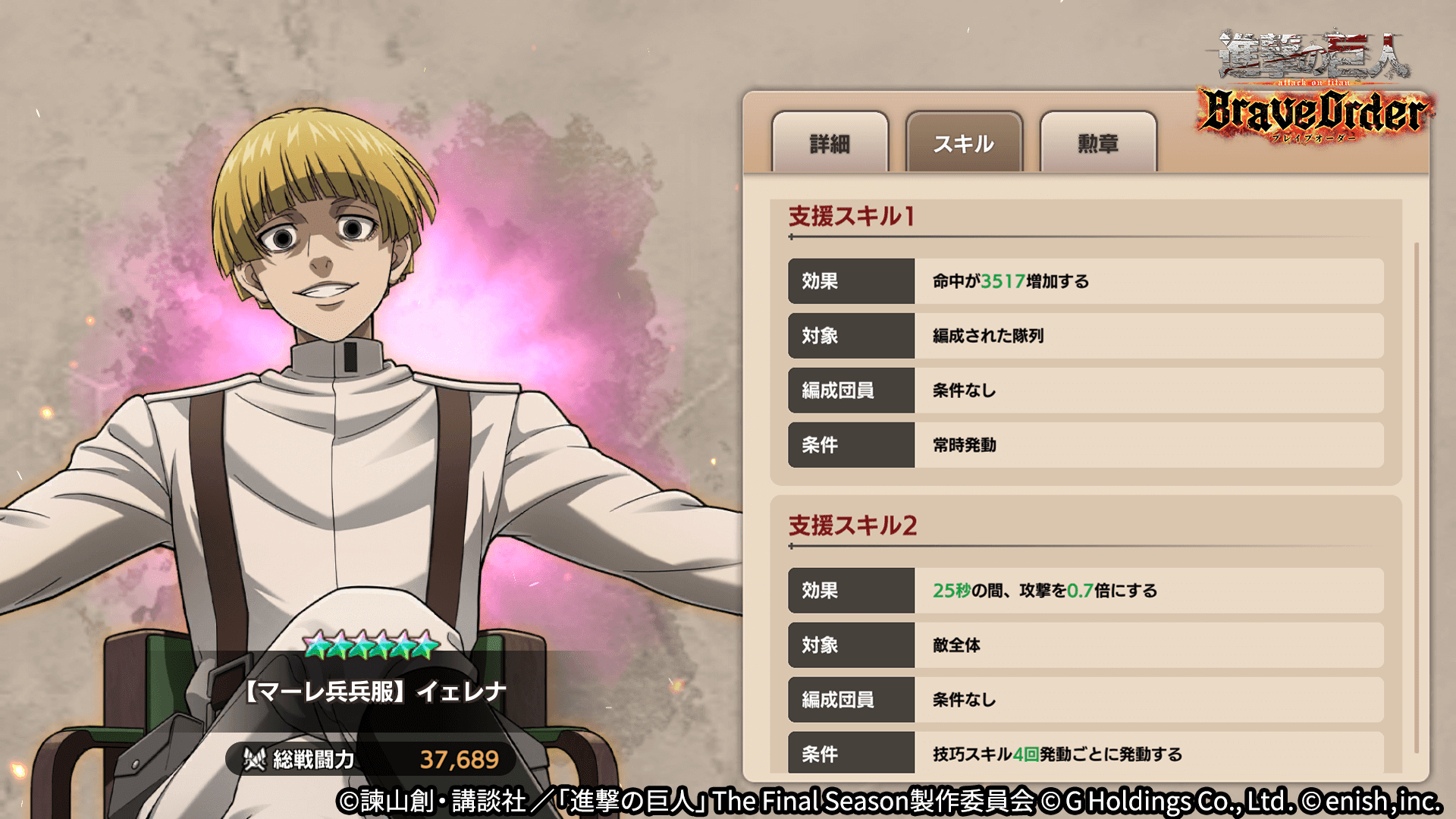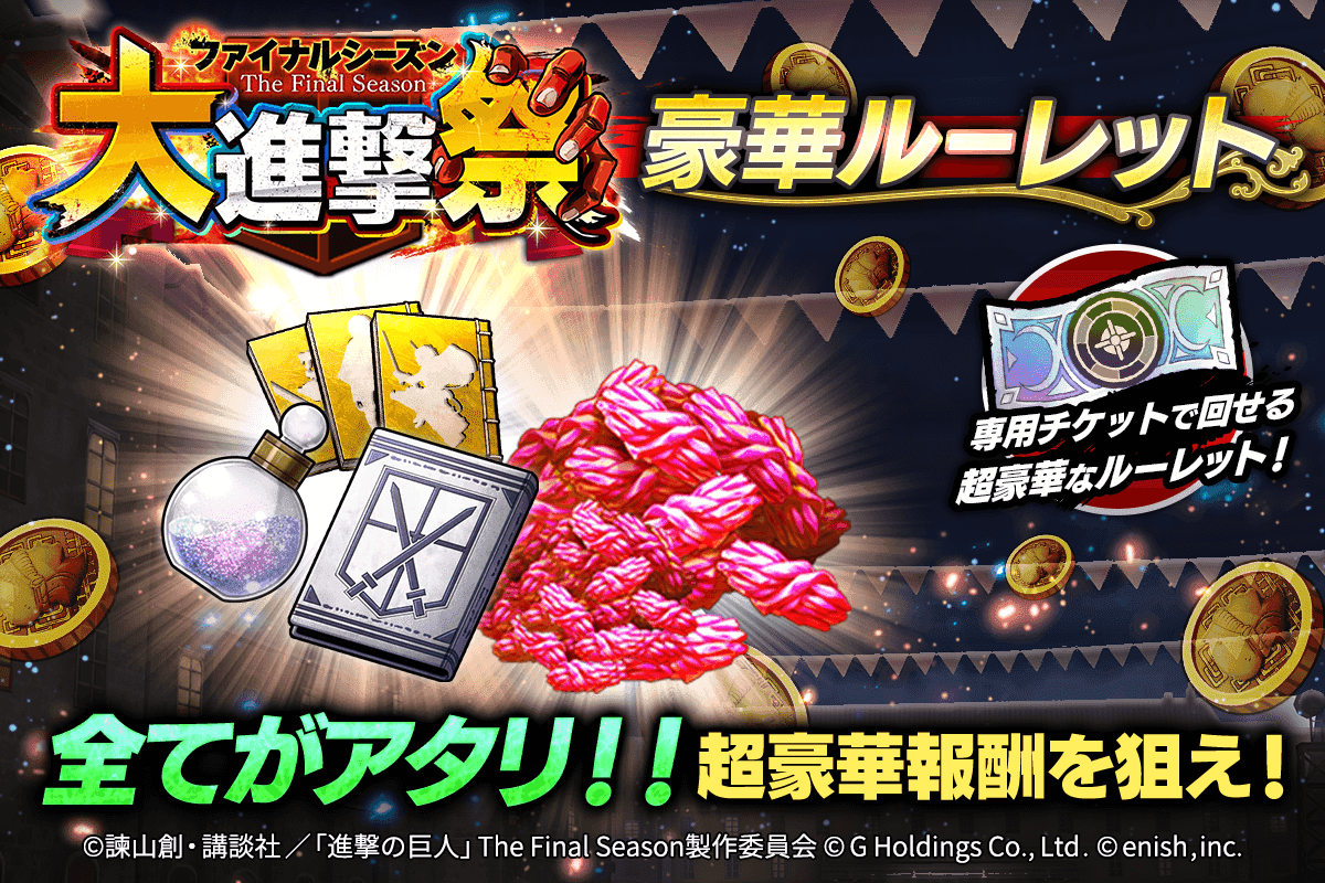 著作権表記:©諫山創・講談社/「進撃の巨人」The Final Season製作委員会 ©G Holdings Co., Ltd. ©enish,inc.