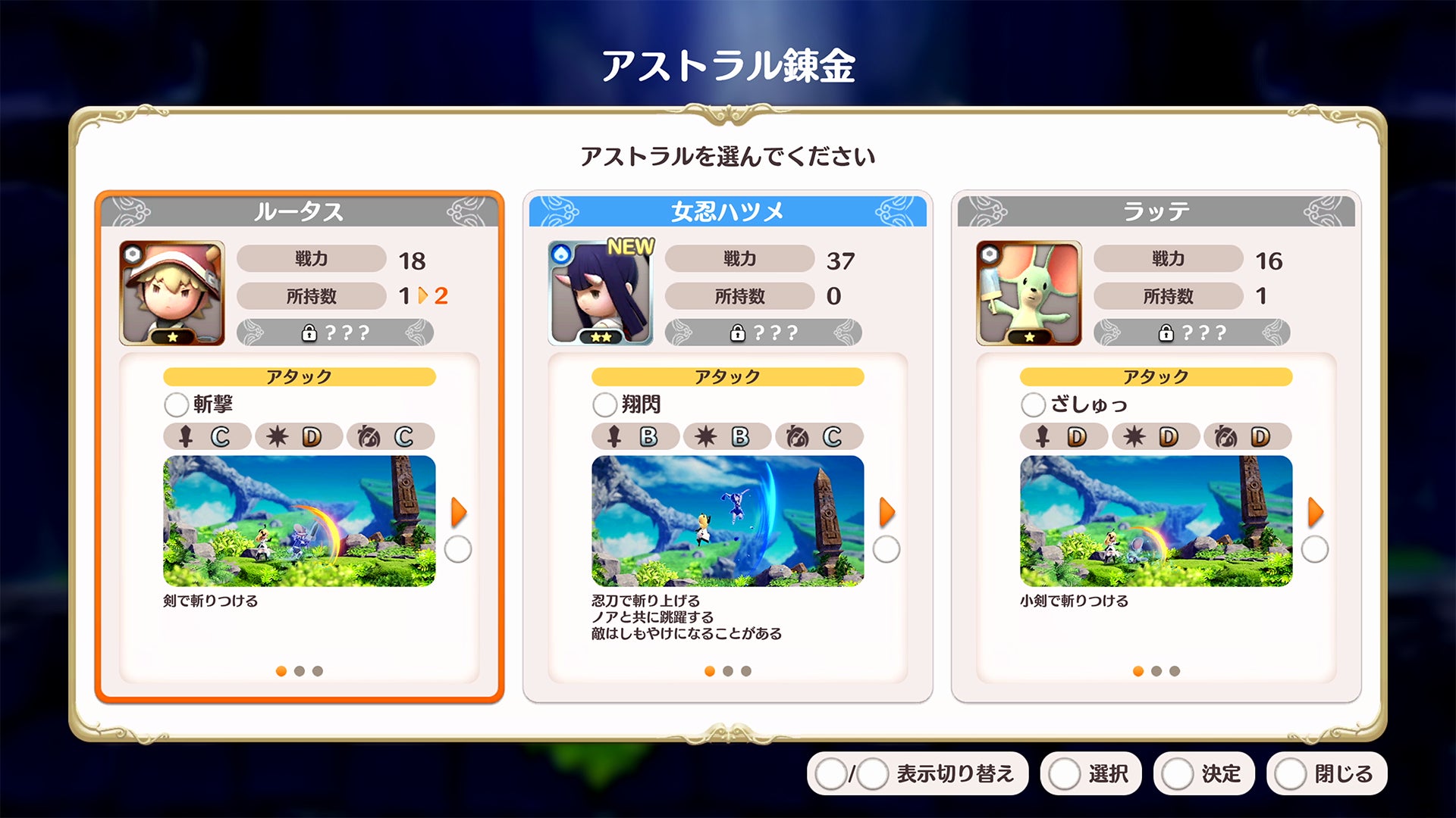 図鑑に登録されていない新しいアストラル・アクセサリを入手した際、「New」マークがつくようになります。