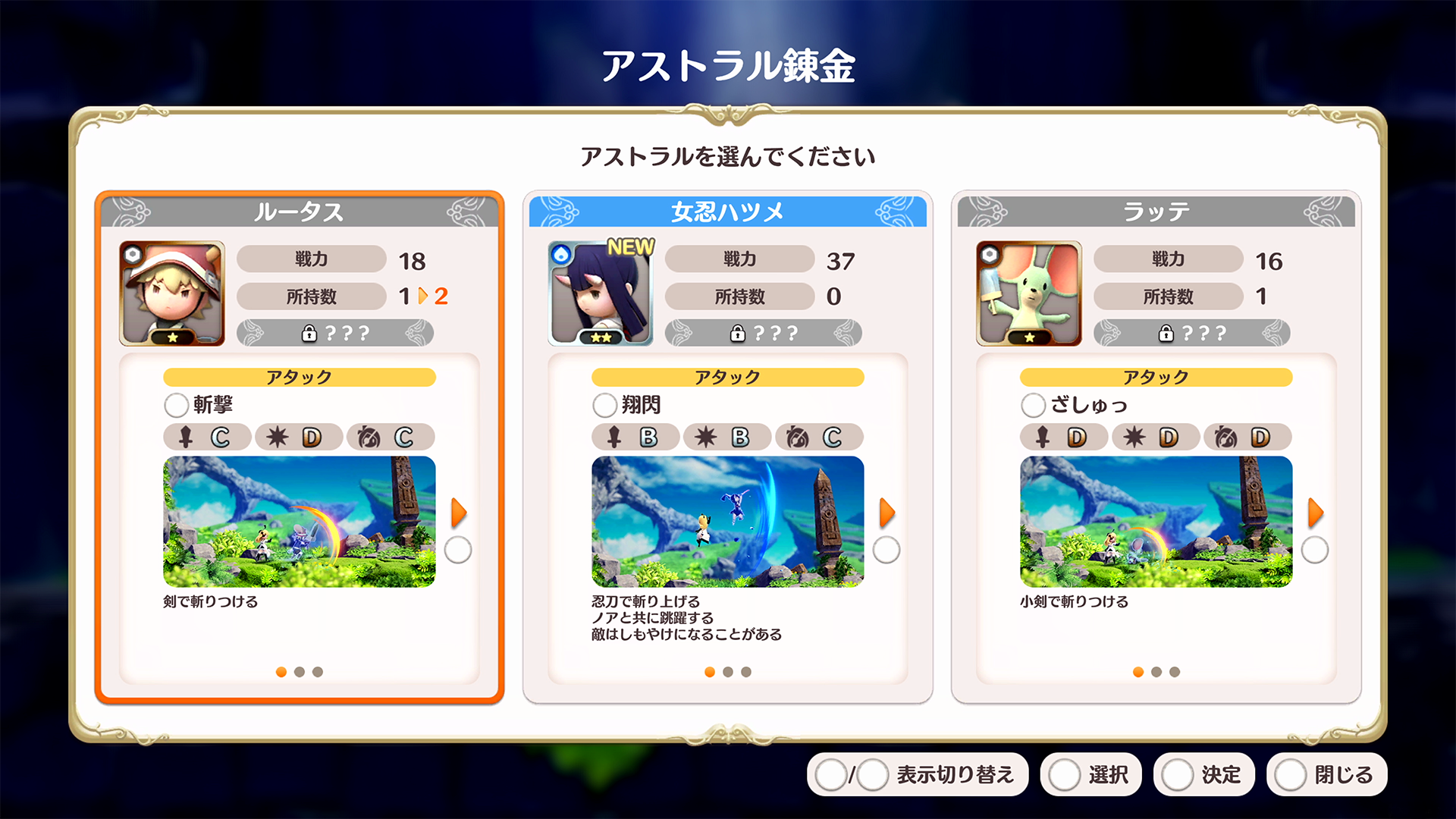 図鑑に登録されていない新しいアストラル・アクセサリを入手した際、「New」マークがつくようになります。