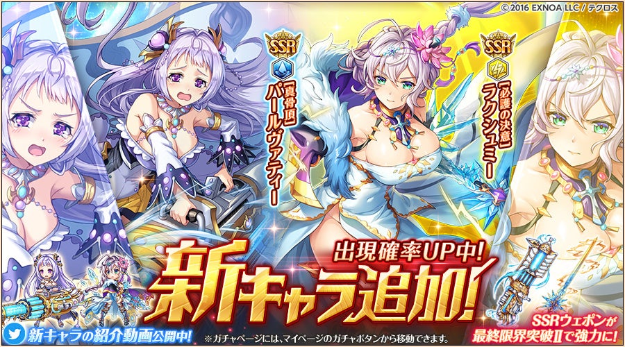 合同会社EXNOA(本社:東京都港区、CEO:村中 悠介、URL:https://games.dmm.com/)が運営するDMM GAMESにおいて『神姫PROJECT A』は、本日「パールヴァティー」はSSR昇格、「ラクシュミー」は新衣装で登場したことを発表した。更にSSR幻獣が手に入る降臨戦イベントも復刻開催している。