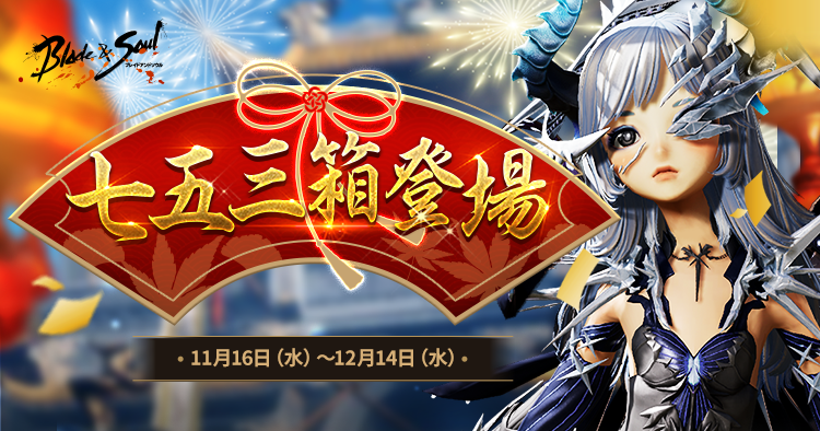 新衣装「霜の花」や最高級装身具「天木首飾り箱」「天木手甲」、「虹のネーム プレート/吹出し選択箱」などが手に入る「七五三箱」が期間限定で登場します。