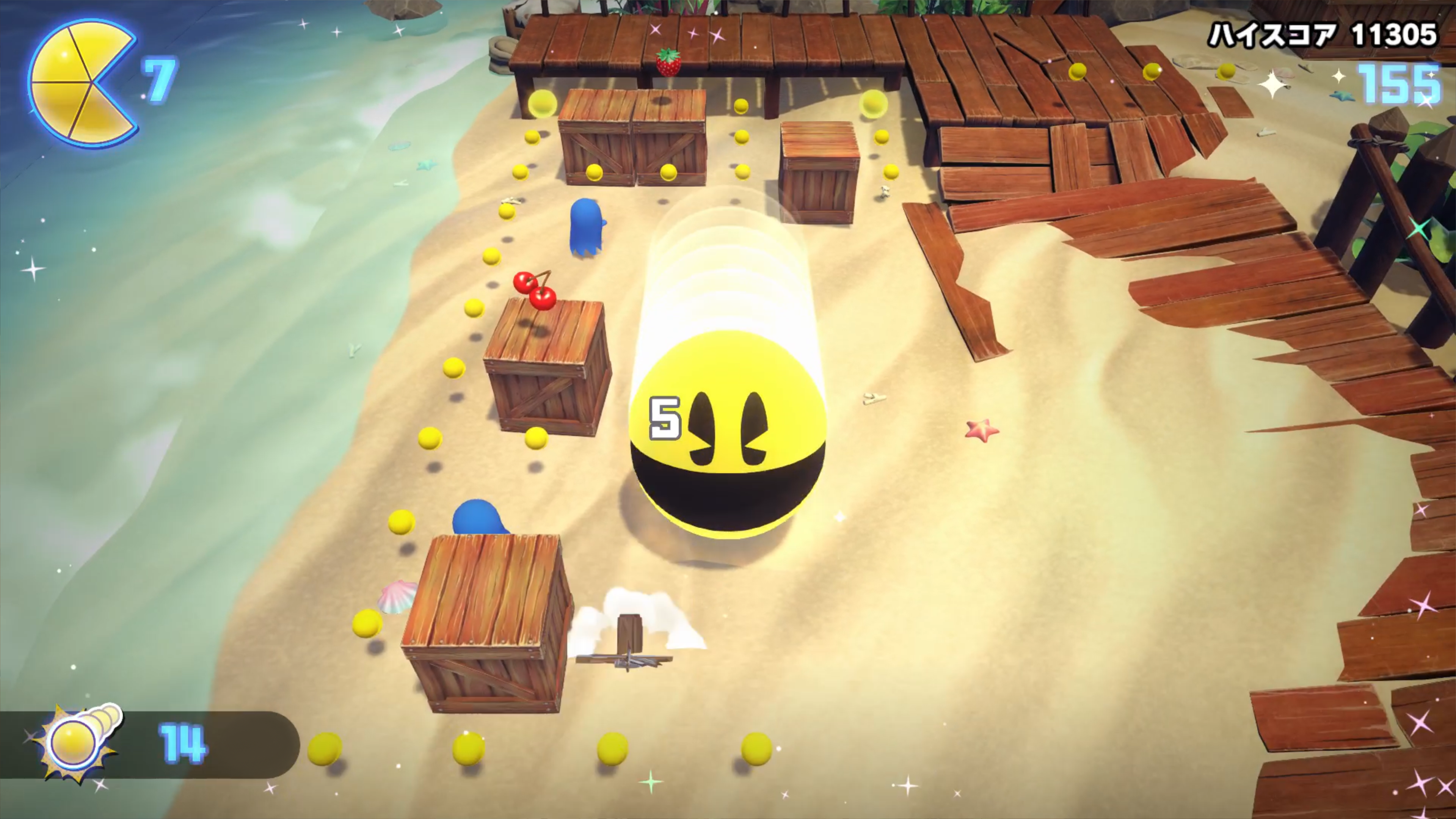 飛んで、はねて、走って、潜って!パックマンのバラエティ豊かなアクションを駆使してゴールをめざしましょう!