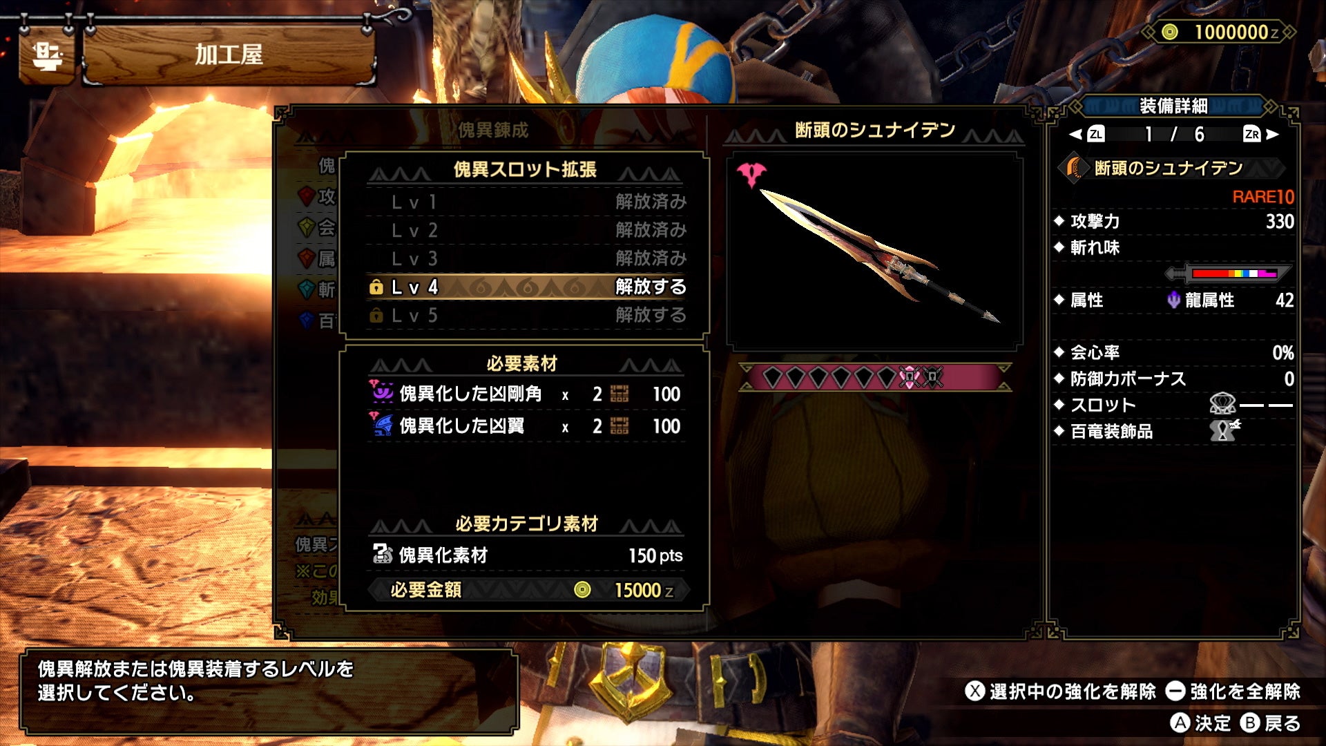 傀異化素材を使って、装備をさらに強化できる武器の傀異錬成において、各強化項目のLvが拡張される。