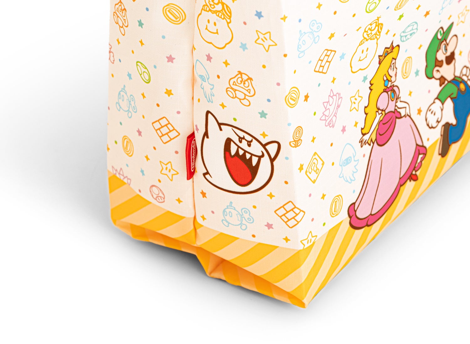 「ラッピング×エコバッグ(マリオキャラクターズ)」はスーパースター型のポーチが付属した、クリスマスプレゼントをにぎやかに演出するのにぴったりなバッグです。Nintendo Switchシリーズ本体のラッピングにもちょうどいいサイズです。