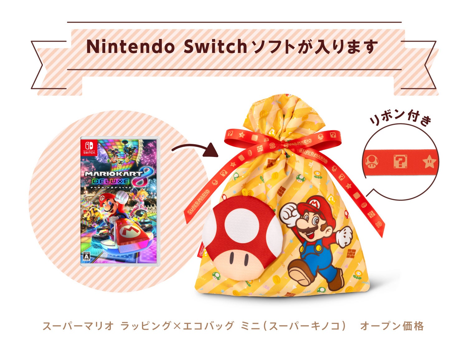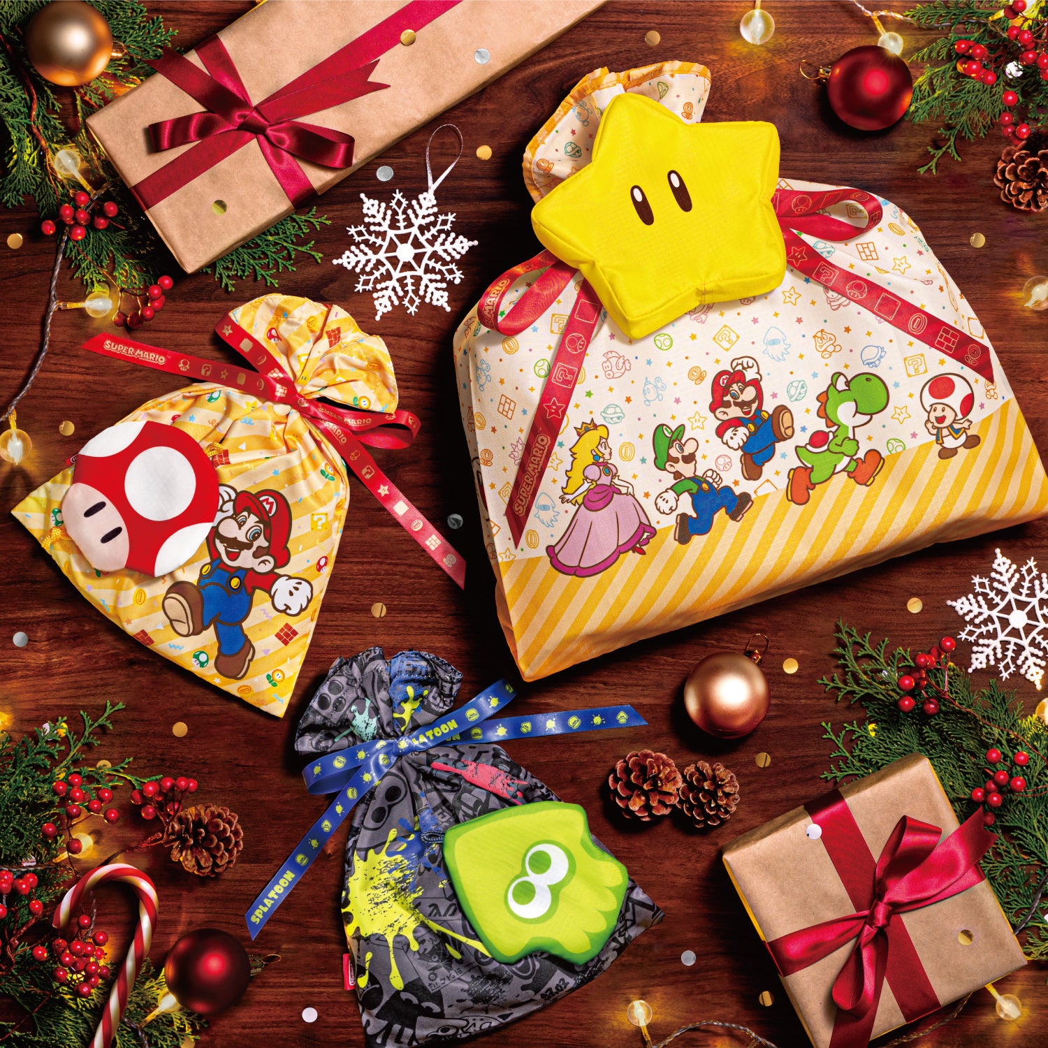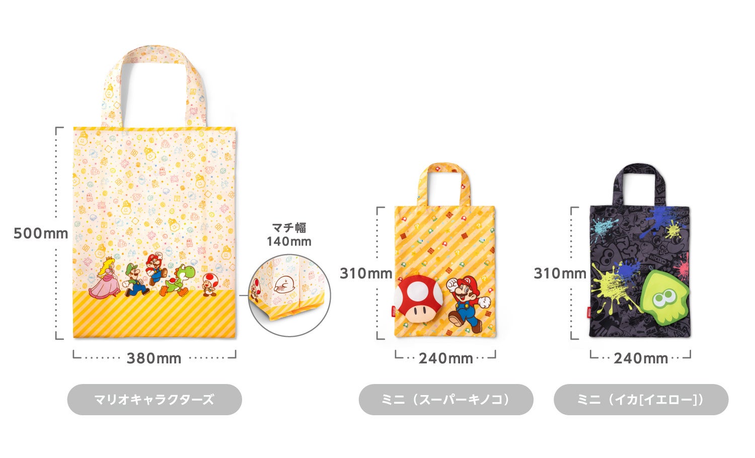 ミニサイズは「スーパーマリオ」と「スプラトゥーン3」の2種類のデザインを用意。Nintendo SwitchソフトやJoy-Con™のラッピングにもぴったりなサイズです。