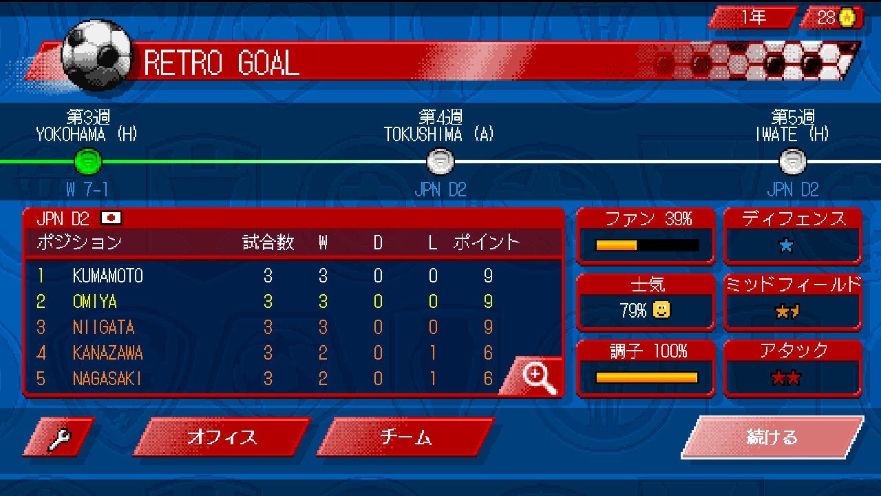 ドット単位の正確なシュートを次々に打つことが可能です。郷愁を誘う16ビットのゲームグラフィックを採用した、アーケードサッカーにシンプルなチームマネジメントが融合したサッカーゲームの登場です。