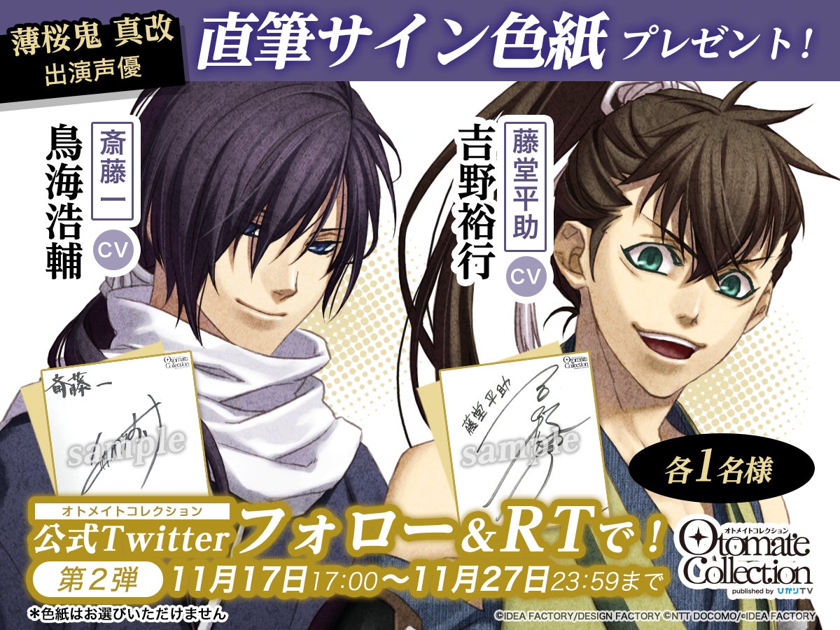 オトメイトコレクションTwitterフォローRTで薄桜鬼 真改 出演声優直筆サイン色紙プレゼントキャンペーン