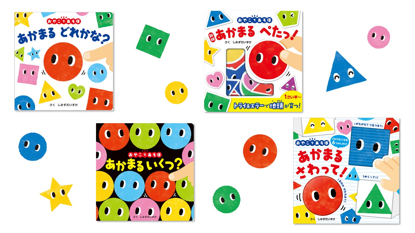「あかまる」シリーズ(作・しみずだいすけ)は、ポプラ社が2017年から刊行している、赤ちゃん絵本シリーズ。1作目の『あかまる どれかな?』は発行部数14万部を超え、2018年のMOE絵本屋さん大賞パパママ賞で第5位を受賞。シリーズ5作の累計で26万部を突破した、赤ちゃん絵本の新定番とも言える人気シリーズです。
