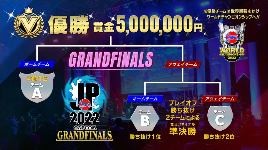 リーグ本節終了後、本節2位から5位のチームが「プレイオフ」へ進出、さらに「プレイオフ」を勝ち上がった上位2チームと、本節1位のチームが決勝大会である「グランドファイナル」へ進出し、2022年シーズンの優勝と、総額800万円の賞金を懸けて激突します。
