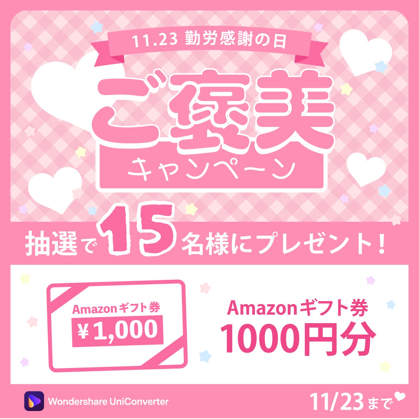株式会社ワンダーシェアーソフトウェア(東京都千代田区、代表:呉太兵)の豊富な機能を搭載した動画ダウンロードソフトWondershare UniConverter(ユニコンバーター)の公式Twitterアカウントにて『Amazonギフト券』が当たるキャンペーン実施中!この機会にぜひご参加下さい