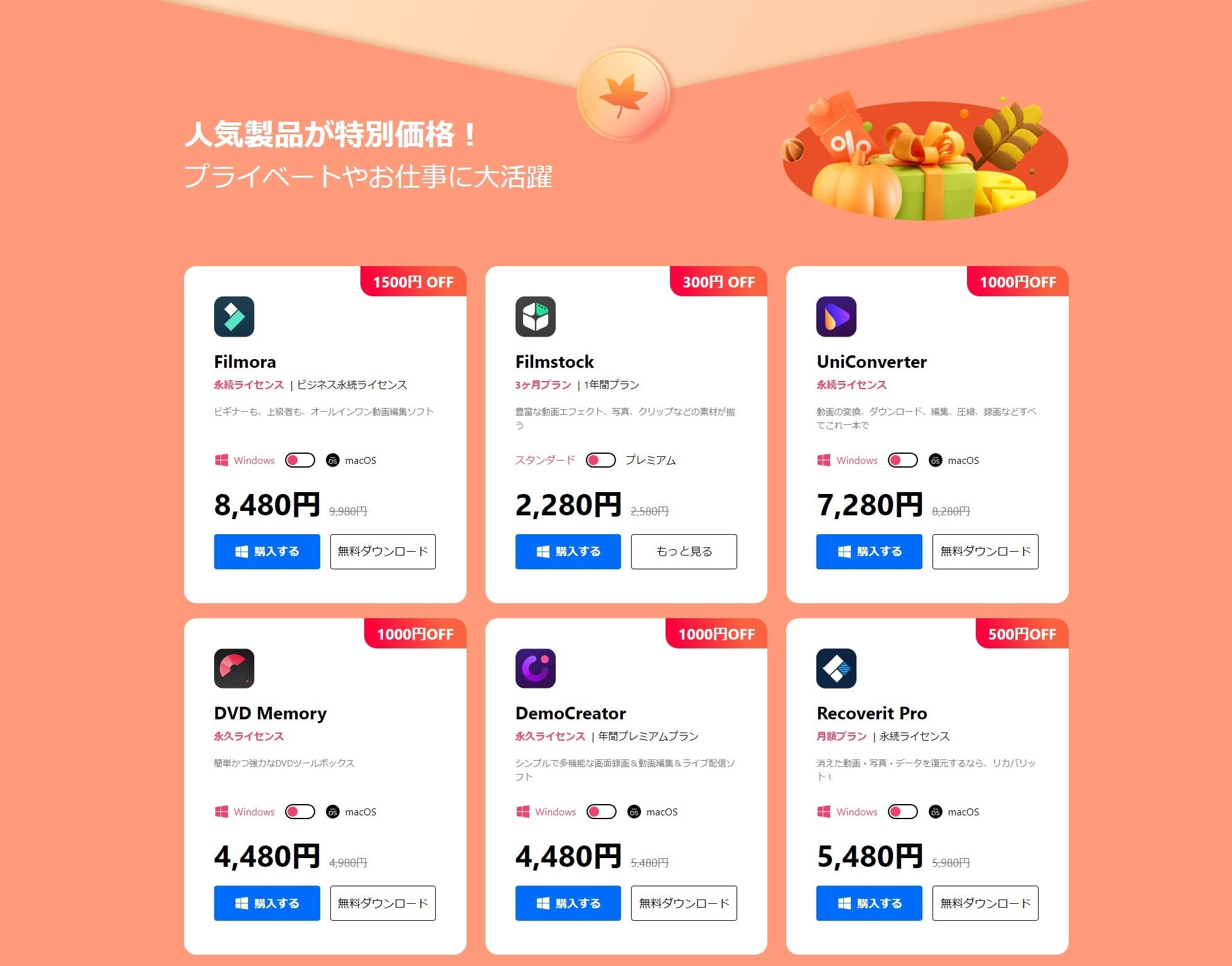 ■ 特設ページ:https://www.wondershare.jp/thanksgiving-sale.html