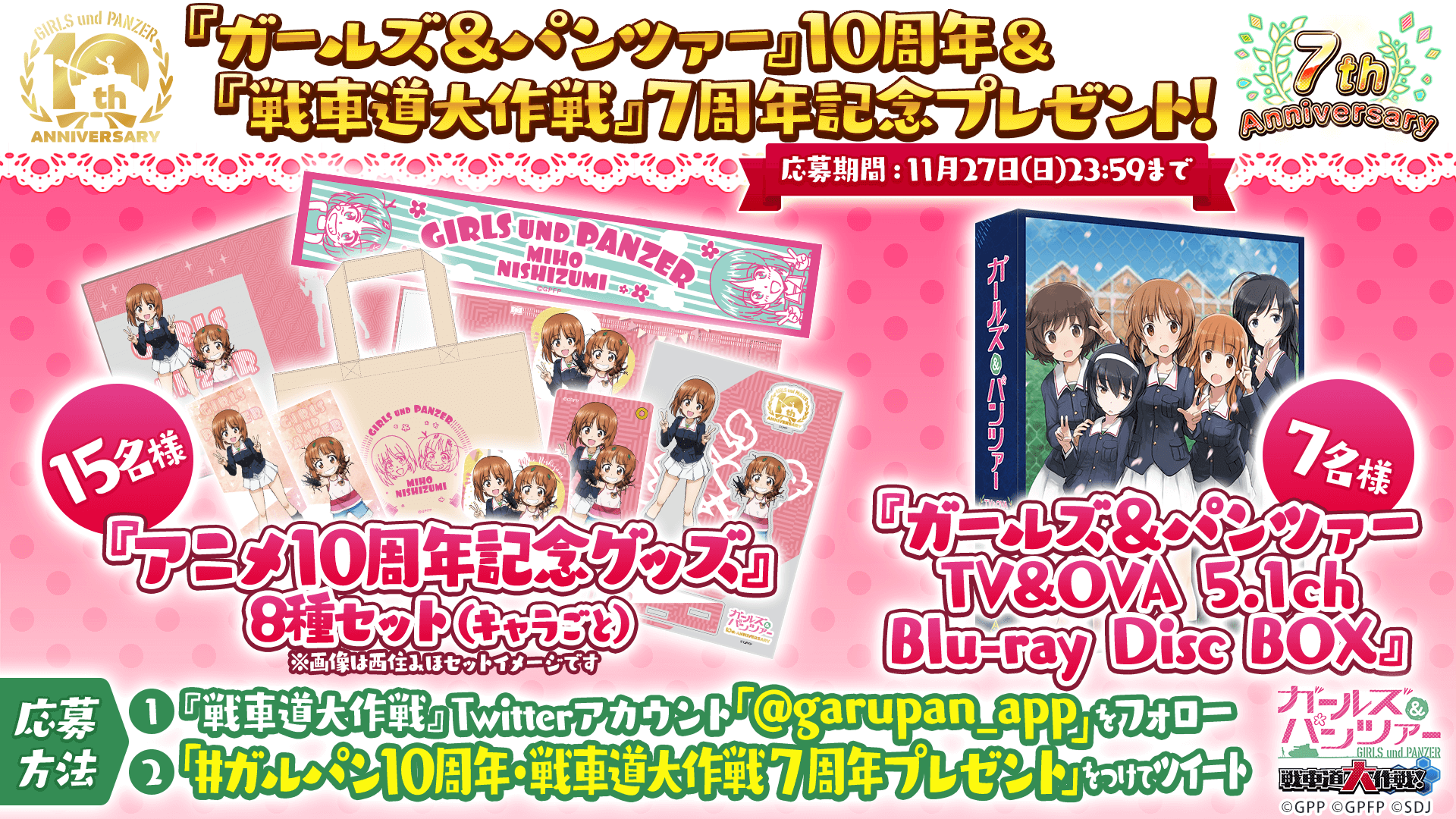- 『ガールズ&パンツァー』10周年&『戦車道大作戦』7周年記念! グッズプレゼントキャンペーンを開催!