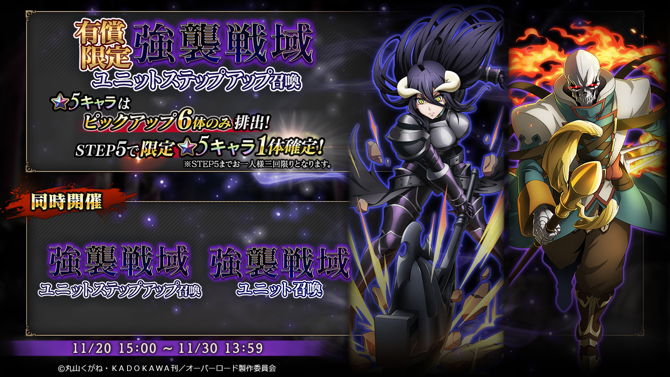 「【挑戦者】モモンガ」など、人気のキャラクターが含まれた召喚なので、ぜひお見逃しなく!