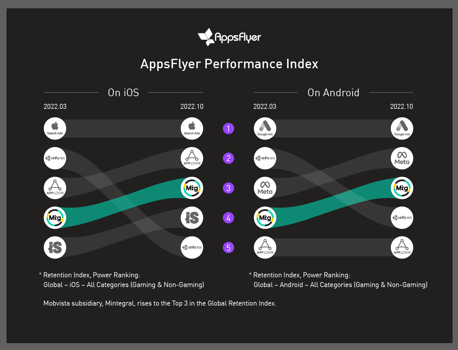 モバイルマーケティング業界は、激動の上半期を乗り越えたものの、全体的にはまだやや下降傾向にあるため、この先もさらに多くの課題が待ち受けていることでしょう。広告戦略がより複雑化する中、モバイル広告の最適化には、より高度な配信戦略およびツールとしてのプラットフォームが必要になってきます。AppsFlyer第15回目のパフォーマンスインデックスを総合的に分析した結果、GoogleとMetaの市場シェアは低下したものの、Androidにとって依然として最もコアなチャネルとして存在し続けるため、これまで同様に注目していく必要があります。また、Mintegralは今年最も成長が著しく、注目すべきプラットフォームの1つであると考えられます。単一の配信戦略ではなく、特定の配信過程で、トップとミドルの強力なチャネルを効果的に組合せ、最適化することが、この逆境を乗り越える手立てとなるでしょう。