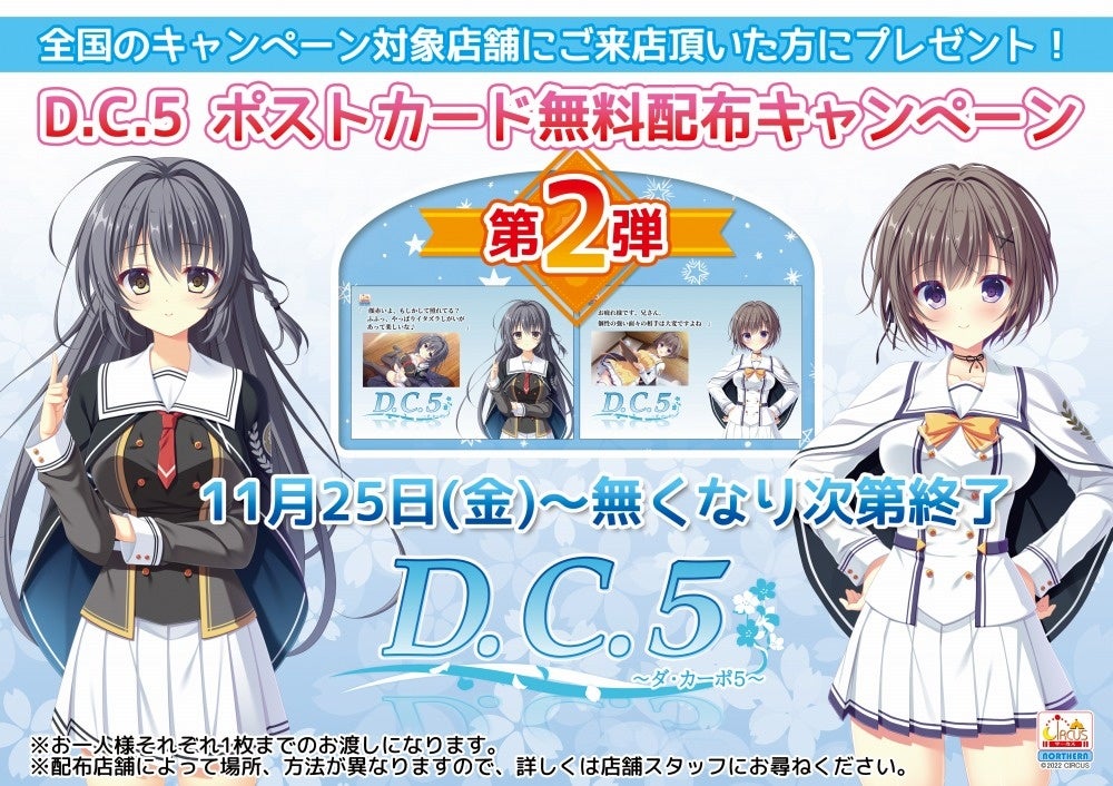 11月25日(金)より全国のキャンペーン対象店舗にて「D.C.5 ポストカード無料配布キャンペーン第2弾」を開催します。