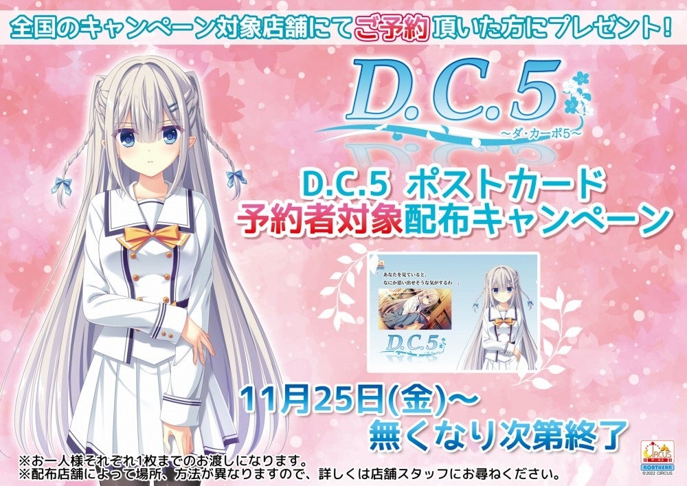 同じく11月25日(金)より全国のキャンペーン対象店舗にて「D.C.5 ポストカード予約者対象配布キャンペーン」を開催します。