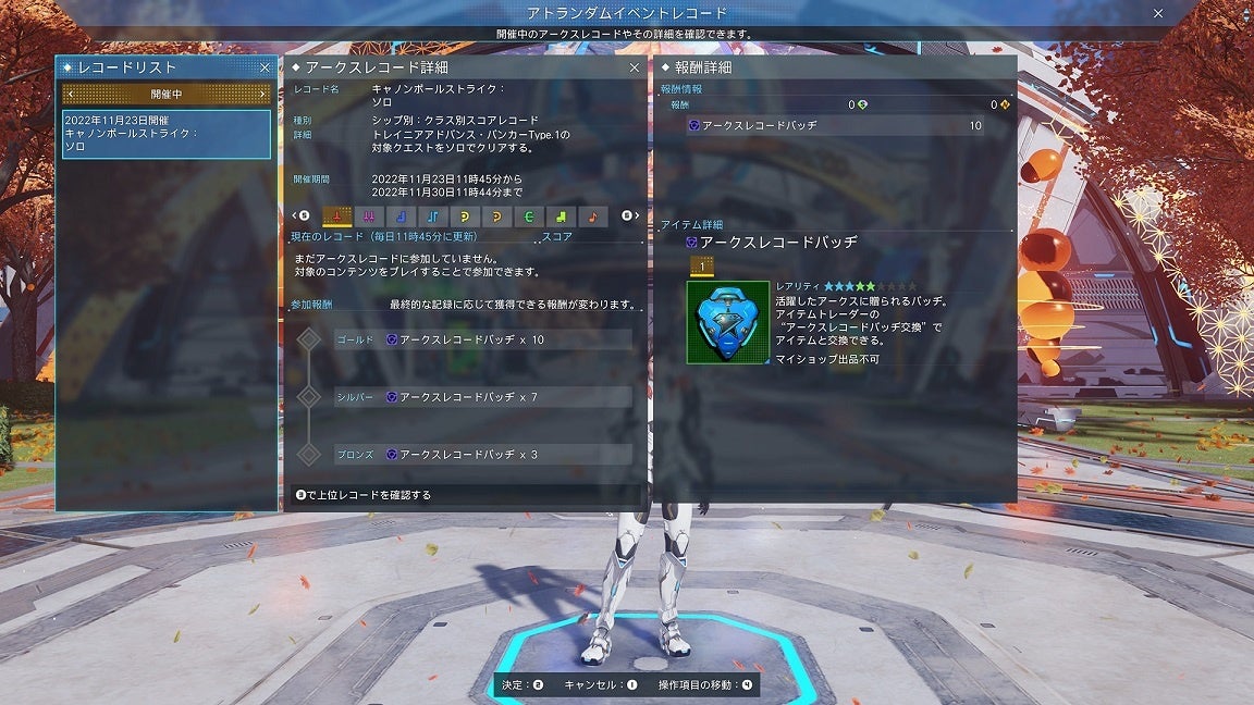 トレイニアアドバンス「キャノンボールストライク」のソロ版を対象としたアークスレコードが開催されます。仲間と協力してハイスコアを叩き出し、より良い報酬を獲得しましょう。