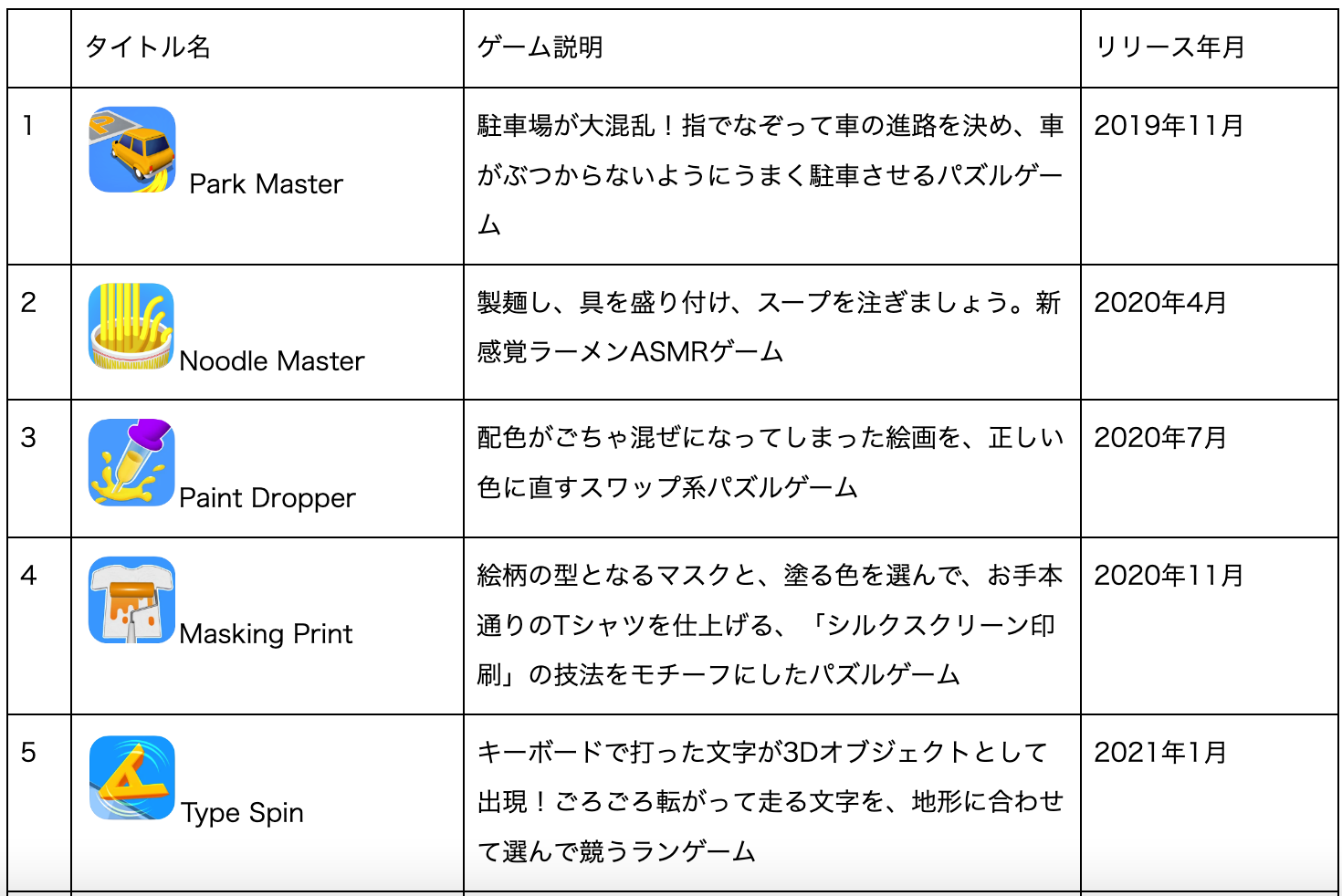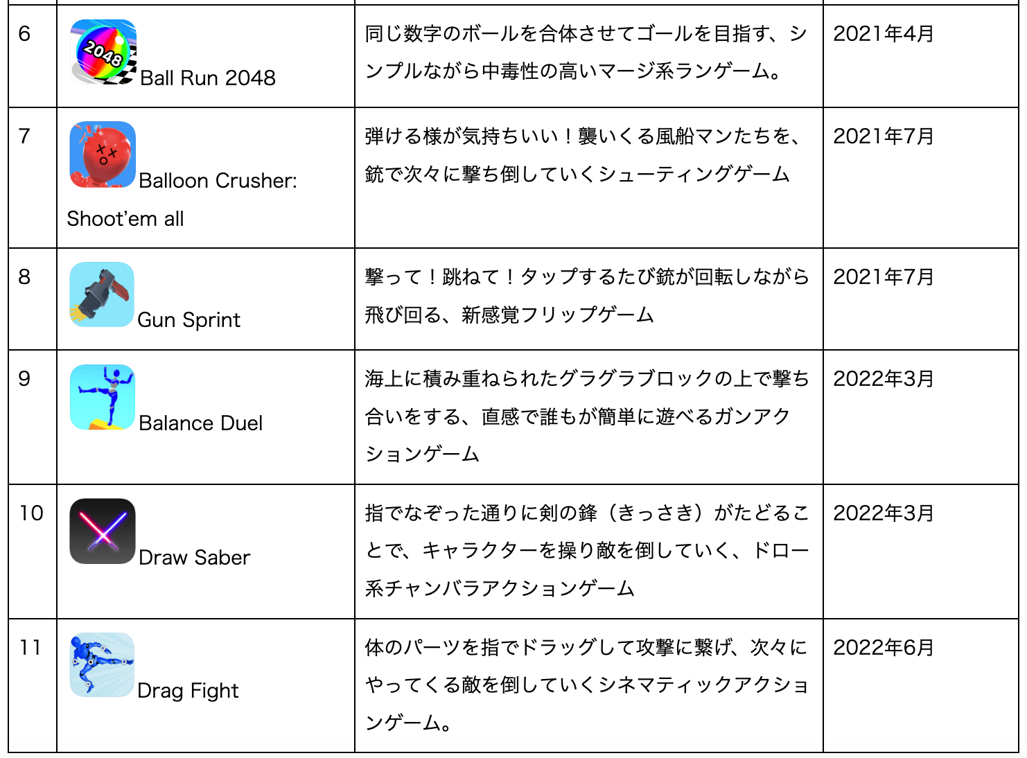 <カヤックのハイパーカジュアルゲームタイトル一覧>